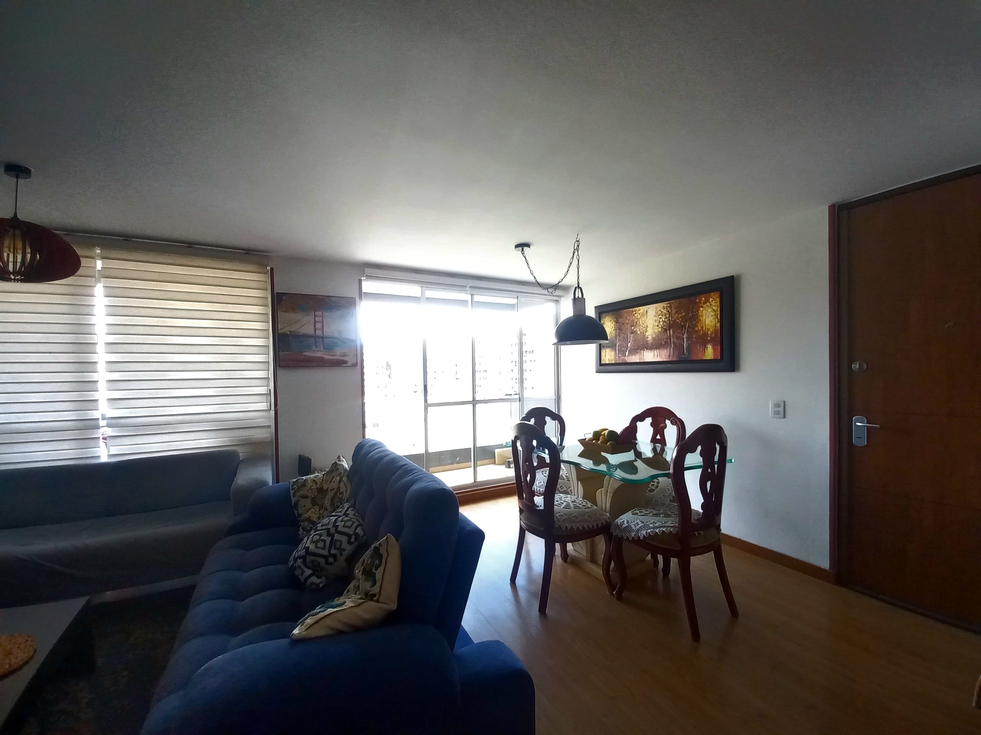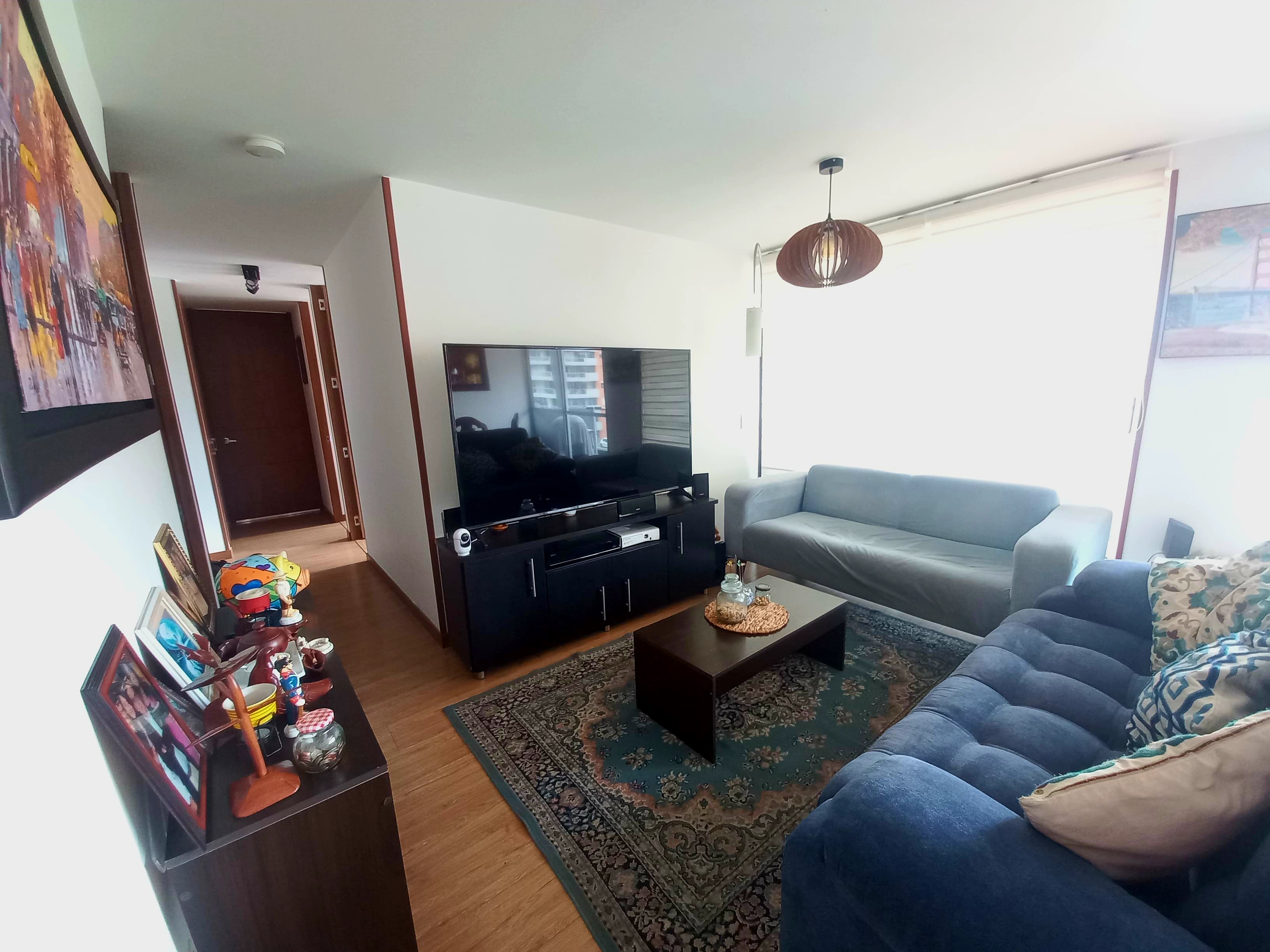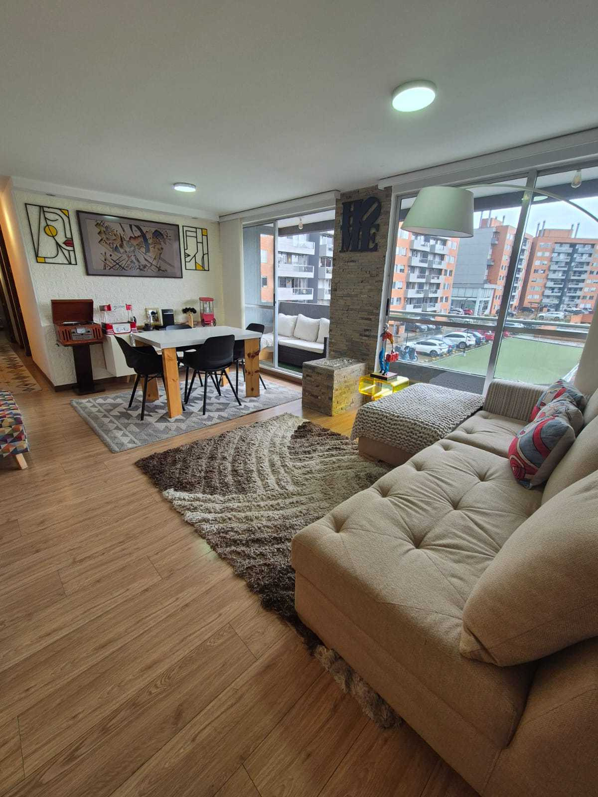 Apartamento de 97m2 en sexto piso sala comedor con balcón y chimenea, cocina integral y alacena, zona de lavandería con muebles y división en vidrio, tres alcobas, tres baños, estudio, alcoba principal con balcón, baño privado y wallking closet, pisos en madera laminada y baldosa, mueble de linos, iluminado y completamente encortinado en panel japones, parqueadero cubierto y deposito. En conjunto cerrado con club house, piscina, cancha de squash, spa con sauna, jacuzzy y turco, gimnasio, acuaparque para niños, teatrino, cafetería, zona bbq, ludoteca, cancha múltiple, zona recreación canina, golfito y amplias zonas verdes. zona residencial cerca a colegios, supermercados y vías principales.