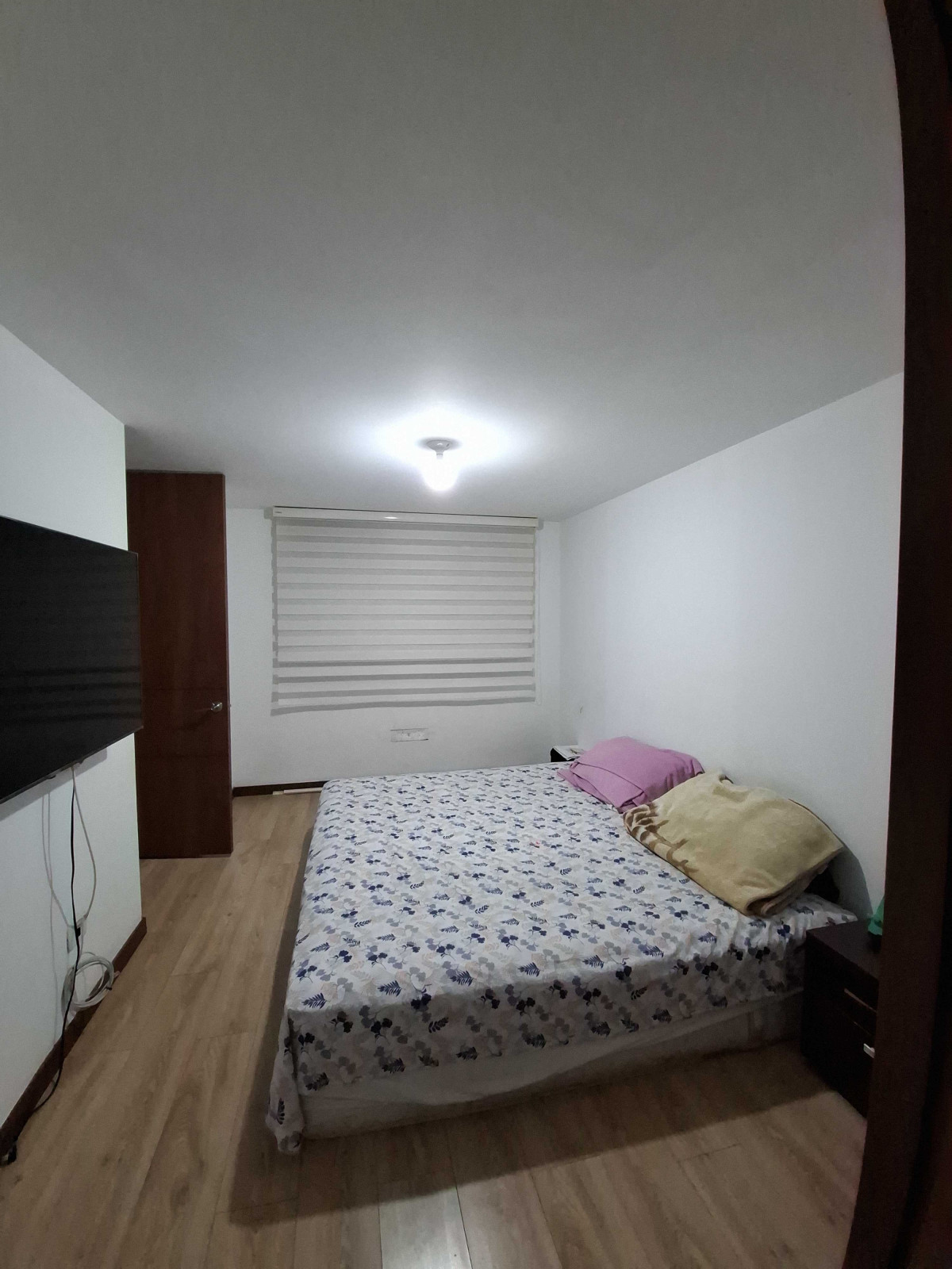 Apartamento en venta de 83m2, con vista interior, ubicado en un 3er piso, acceso por ascensor, parqueadero propio descubierto, depósito. Consta de 3 habitaciones, 3 baños, sala comedor, cocina integral y zona de lavandería. Tiene piso laminado en habitaciones y zona social y piso cerámico en baños y cocina. El conjunto tiene zonas verdes, zonas para niños, zonas húmedas, squash, salón múltiple, supermercado, salón comunal, zona BBQ y vigilancia privada las 24 horas.
